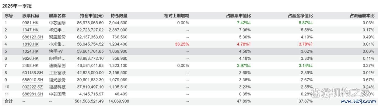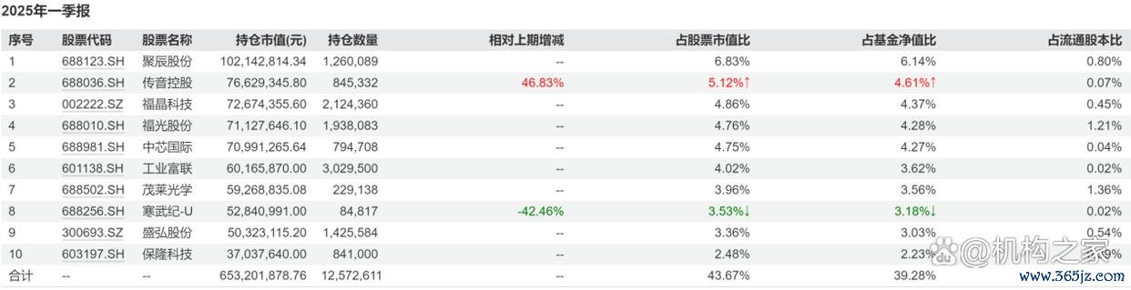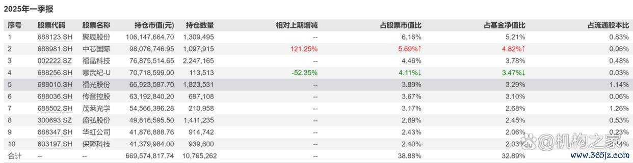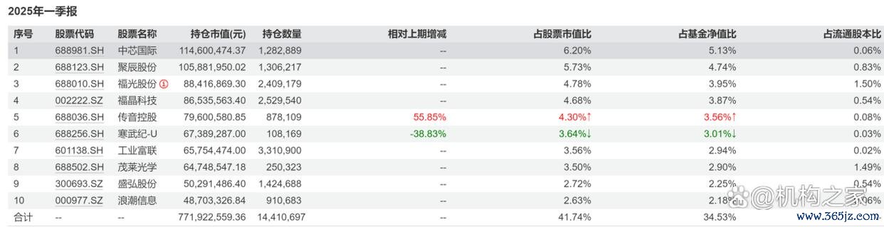 从以上数据可以看出,上述四只基金2025年一季度末的重仓股重合度较高,其中,中芯国际、聚辰股份、福光股份、福晶科技四只股票同时进入了这四只基金的前十大重仓股,而传音控股、寒武纪-U、工业富联、茂莱光学、盛弘股份等则同时进入三只基金的前十大重仓。