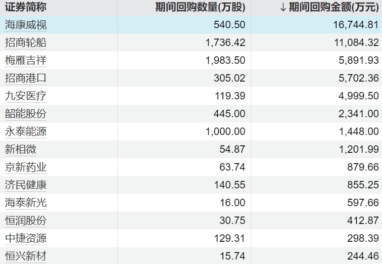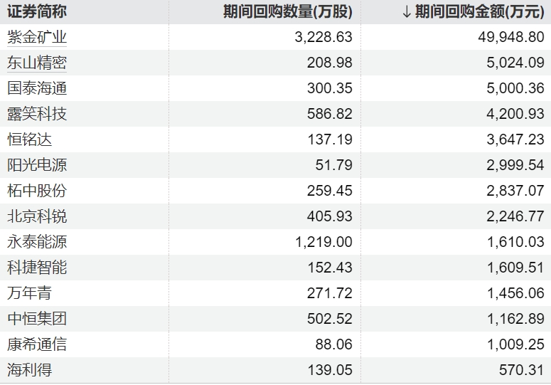 16家上市公司股票获回购,紫金矿业回购金额最高