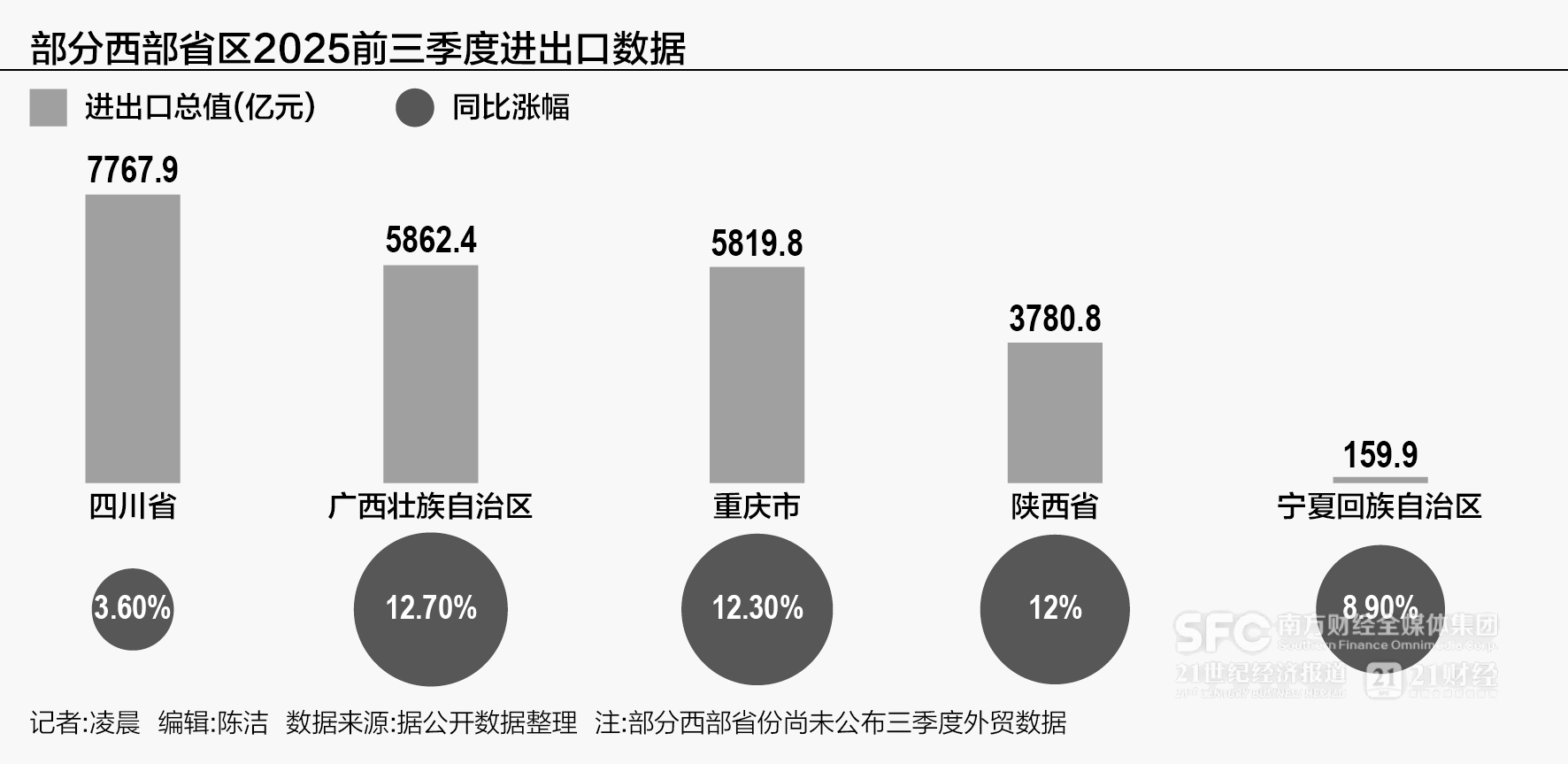 近日,多个省份发布前三季度外贸数据,西部不少省份的表现颇为亮眼。其中,陕西以进出口总值3780.8亿元、12%的同比增速,大幅跑赢全国8个百分点;重庆、广西的进出口总值增速更是达到12.3%、12.7%。